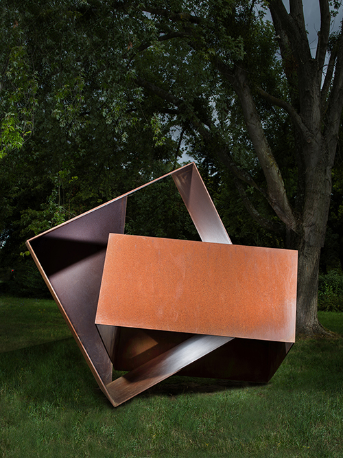 Manfred Emmenegger-Kanzlers (* 1953 in Waldshut) »Square Dance« ist eines von mehreren Werken, in denen sich der Bildhauer mit den Formen des Quadrats und des Würfels auseinandersetzt. Die Cortenstahl-Plastik zeigt zwei halbierte und ineinander verwobene Würfel. Durch die Verschachtelung beider Würfelelemente wird der geometrische Raum des Kubus aufgebrochen und bildet eine neue räumliche Struktur mit seitlichen Öffnungen.