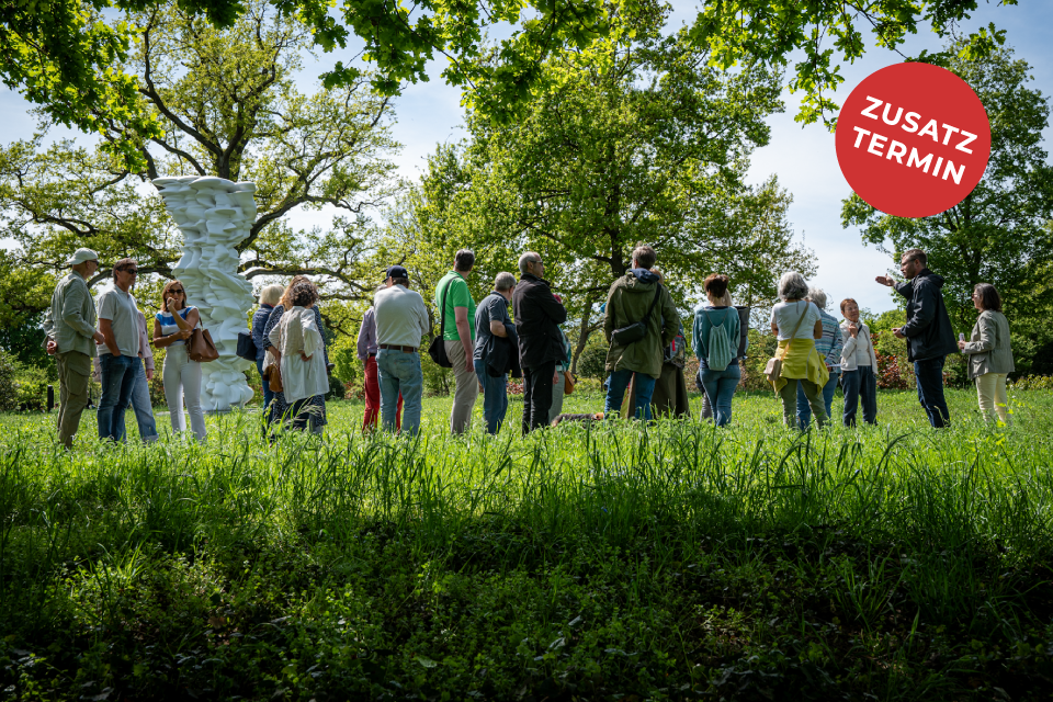 Ab 16:00 Uhr führt Torsten Bruns, Kurator des Skulpturengartens Spanischer Turm, durch die Ausstellung. Die rund 90-minütige Führung beginnt am Ausstellungsgebäude auf der Mathildenhöhe und führt zum Spanischen Turm.