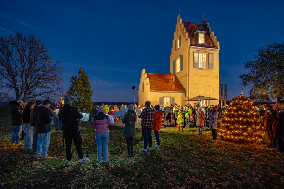 More than 600 visitors accepted the invitation of the Spanish Tower Sculpture Garden to this year’s Advent concert. For the fourth time, guests had the opportunity to enjoy convivial conversation over mulled wine, pastries, and of course, traditional music. Once again, the low brass quartet Trombasso welcomed the Advent season with festive pieces. For the first time, the Starkenburg Youth Trombone Choir performed afterward.